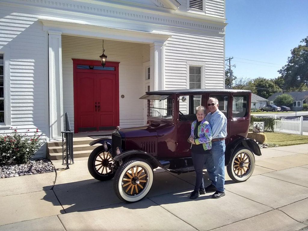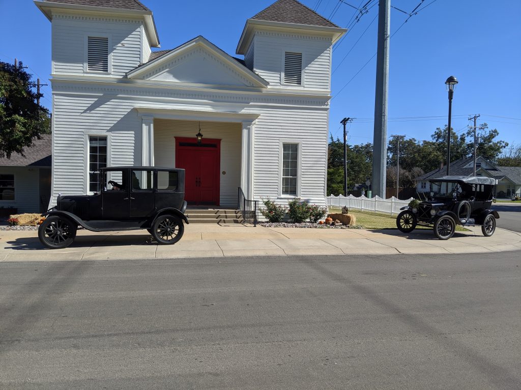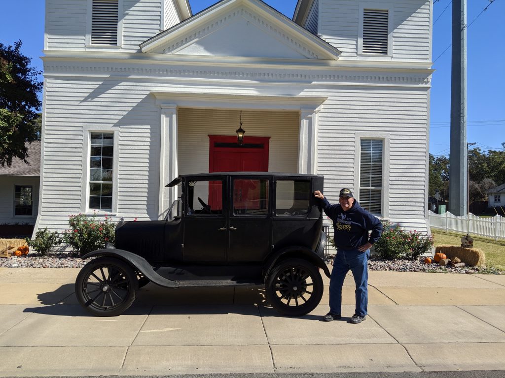 (ROCKWALL, TX — November 6, 2019) The DFW Lonestar Ts club came to Rockwall as part of their trip (stroll) on Saturday, Nov. 2, making a stop at Divine Peace Church on Fannin Street. After having lunch there a few of the members took advantage of a photo shoot opportunity with the church in the background. The church building is the same vintage as these Ford Model Ts since it was constructed in October of 1916. Ford made the Model T from 1909 – 1927.
