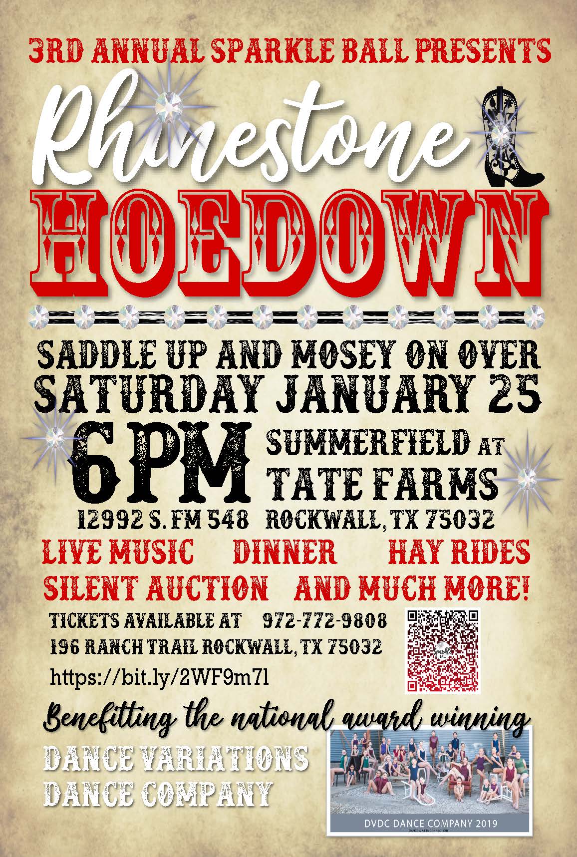 The 3rd Annual Sparkle Ball benefiting the national, award-winning Dance Variations Dance Company will begin at 6 p.m. Saturday, January 25 at Summerfield at Tate Farms, 12992 S. FM 548 in Rockwall.