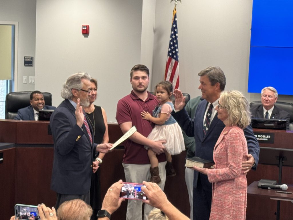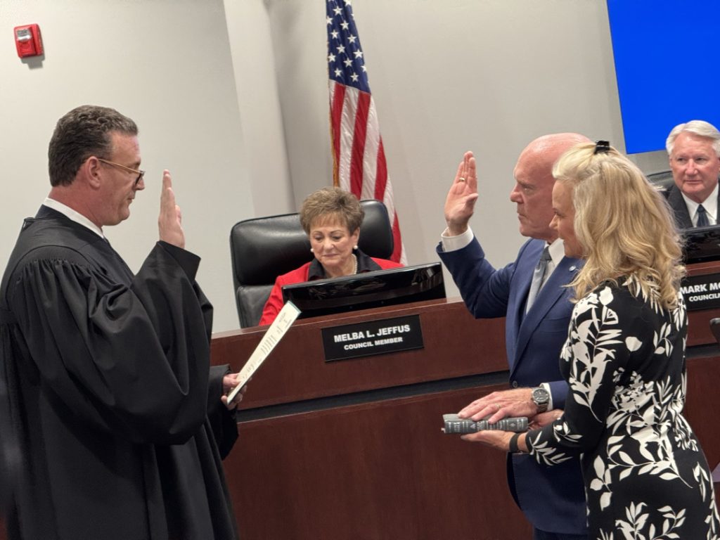 Following the council induction, Judge Brett Hall administered the oath of office to Timothy McCallum, as Mayor of Rockwall. The room erupted in applause as the Mayor thanked Judge Hall for swearing him into his first political office back in 2003—and for graciously agreeing to do it again.