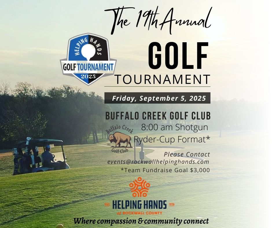 Rockwall, TX (June 20, 2025) – The Helping Hands Golf Tournament is almost full, but we still have a few open team spots available for the big day on Thursday, September 5th at Buffalo Creek Golf Club!