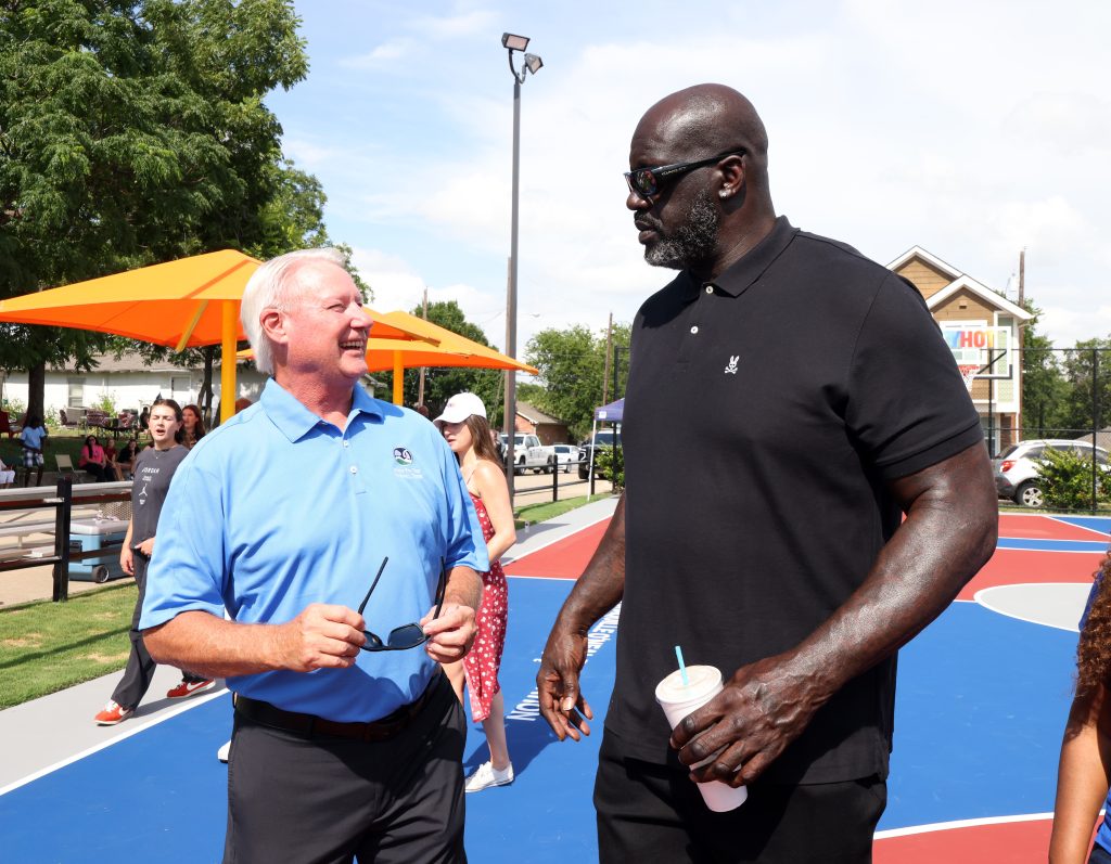 To mark the opening of the new court, Arike’s Team Icy and Shaq’s Team Hot competed in a fiery 5v5 game, in front of the Rockwall community. Shaquille and Arike were joined by local government officials, as well as representatives from Icy Hot, The Shaquille O’Neal Foundation, and Boys & Girls Club of Northeast Texas.
