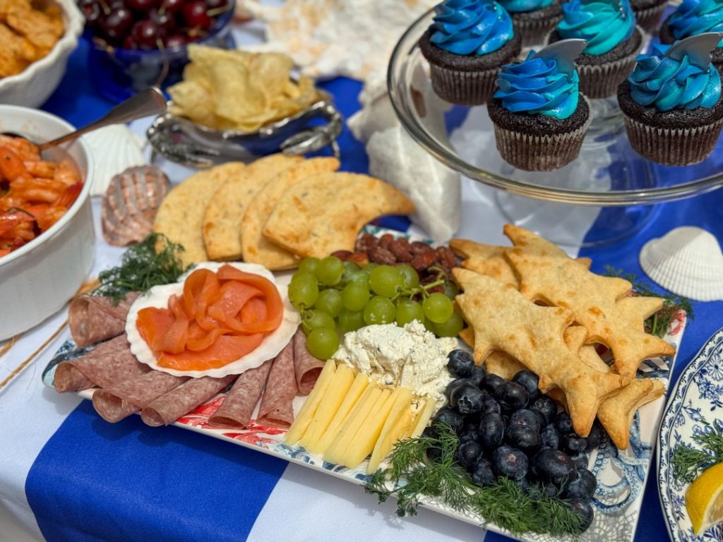 I’m absolutely in love with this shark pool party menu. I really tried to capture a vacation in Amity island with lots of make-ahead seafood.