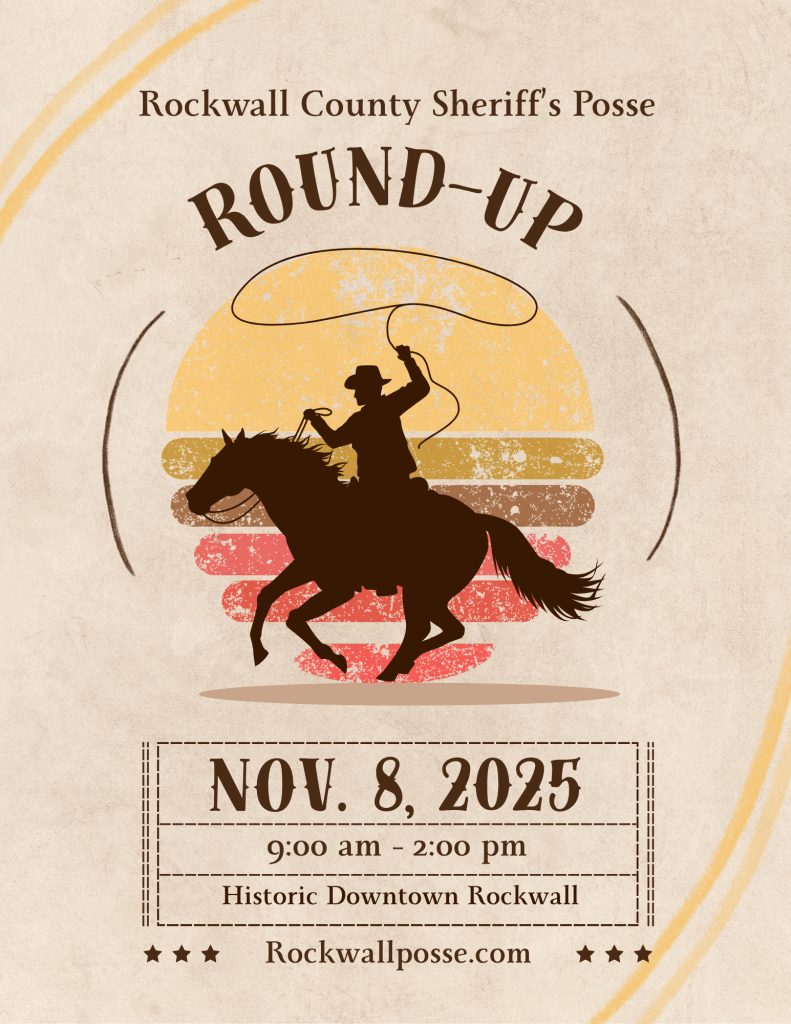 The 6th Annual Rockwall County Sheriff’s Posse Round-up rides into town on Saturday, November 8. Join in the fun from 9:00 a.m. to 2:00 p.m. taking place in the Historic Downtown Rockwall Square.