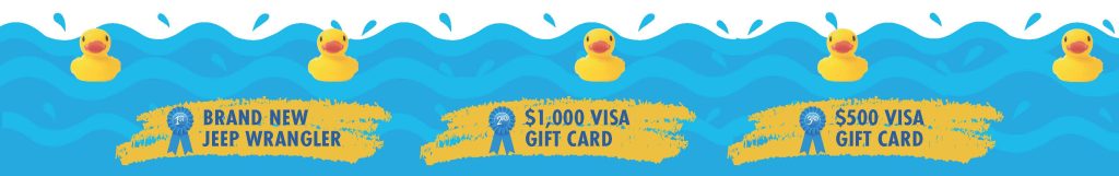 Thousands of rubber ducks, each sporting its own unique racing number, will be poised at the starting line, ready to embark on this eagerly anticipated race. The edges of the multi-level fountains at the Harbor will be full of spectators cheering for their ducks. It’s the race we’ve all been waiting for, with the ultimate prize on the line – a brand new 2025 JEEP WRANGLER!