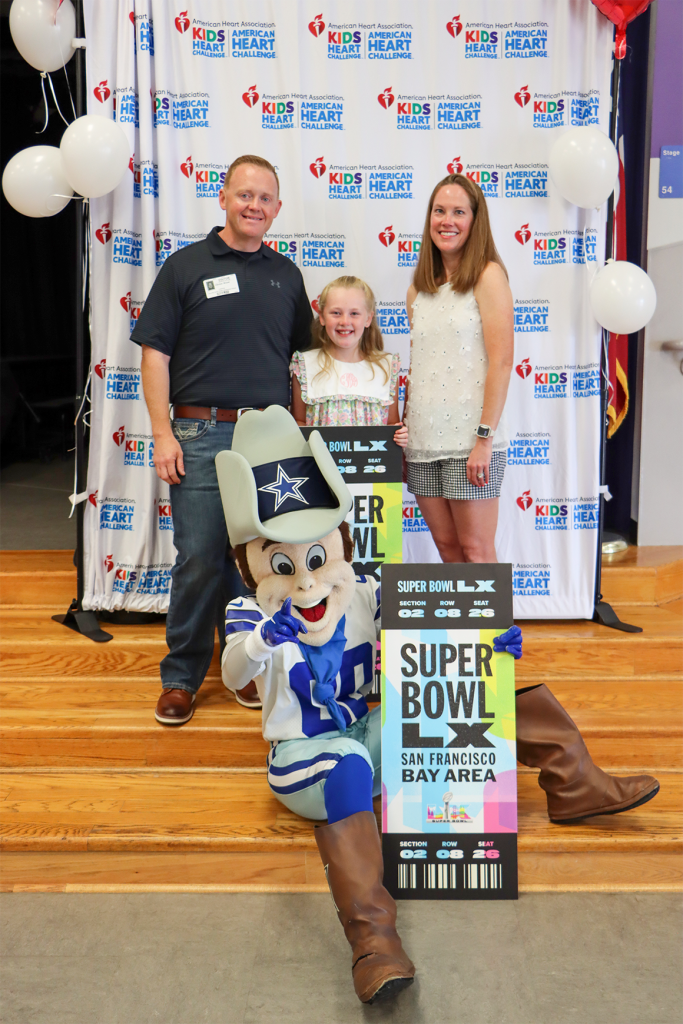 By completing the challenge and learning these vital skills, Chelsie was entered into a national drawing and was chosen as the winner of the Super Bowl tickets! This event highlights the importance of empowering our students with the knowledge to be heart-healthy and to potentially save a life. The funds raised through the Kids Heart Challenge also support the American Heart Association’s mission.