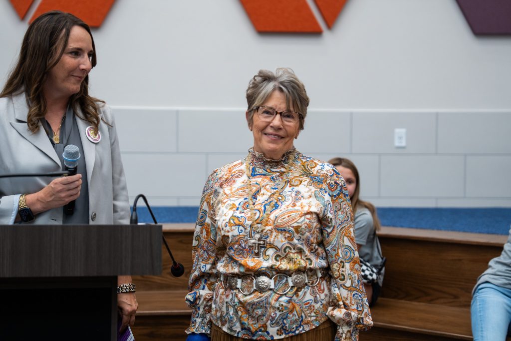The ceremony included a heartfelt tribute from former student and current RCISD teacher Ashlee Poor, who introduced Mrs. Moss, and spoke about the significant impact Moss had on her as a high school student. Poor shared, “Her praise and support kept me going. The words a great teacher speaks can echo in a student’s heart and mind for decades, and Mrs. Moss has been a source of encouragement for me since I was 16. She showed me what love truly is.”