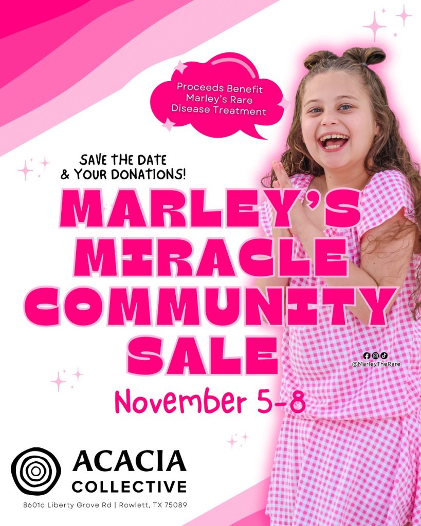 Rowlett, TX (October 29, 2025) – A weekend shopping spree could help change a life! On November 5–8, Acacia Collective will host a massive community fundraiser sale to support 12-year-old Marley Mansour, a Rowlett local fighting a rare genetic disease called NARS1.