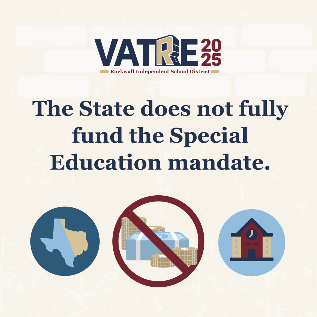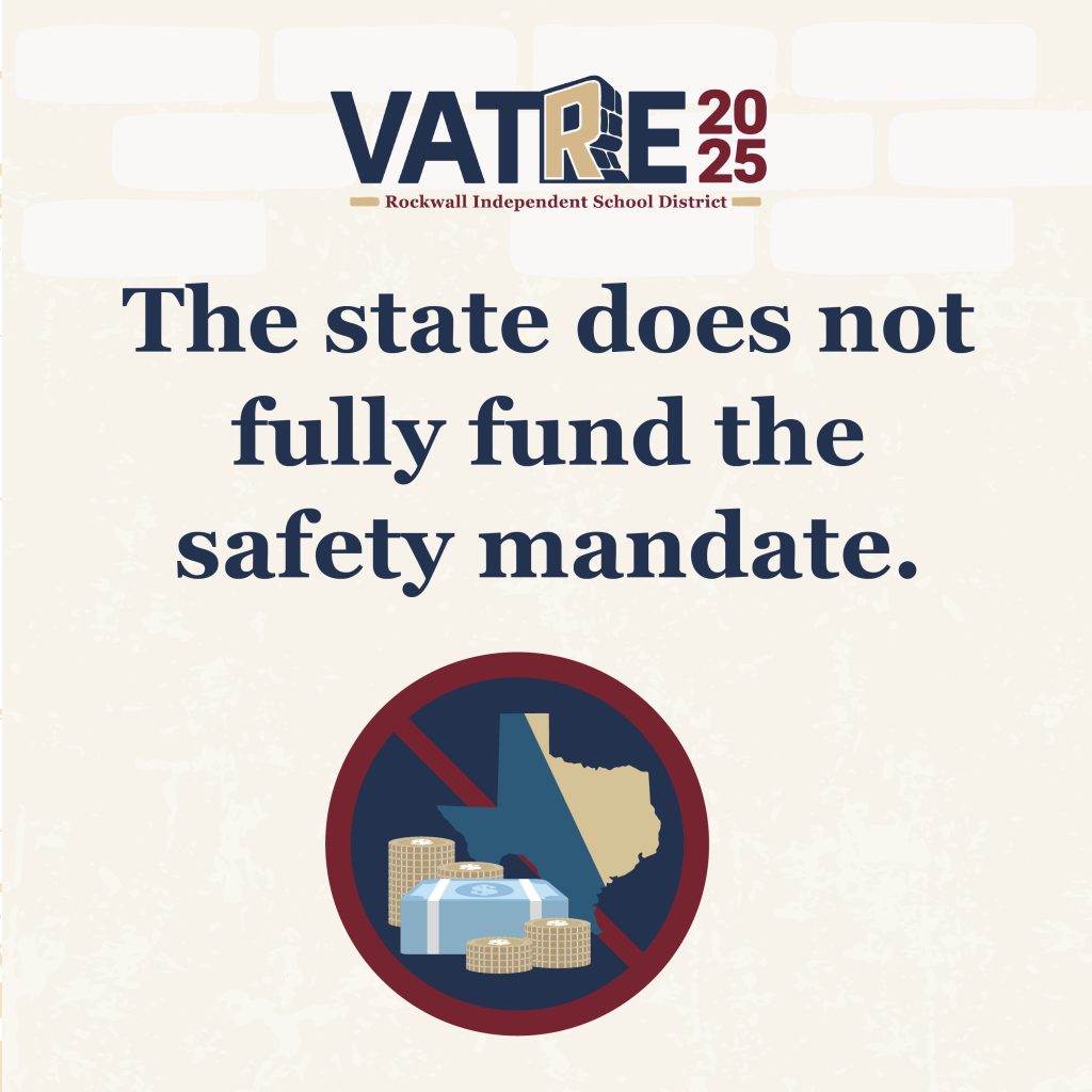 Each year, Rockwall ISD allocates millions of dollars from its General Fund to meet safety and special education requirements that exceed State funding levels. The Voter-Approval Tax Ratification Election (VATRE) would help Rockwall Independent School District continue to fund essential student safety and special education services that the State of Texas does not fully cover.