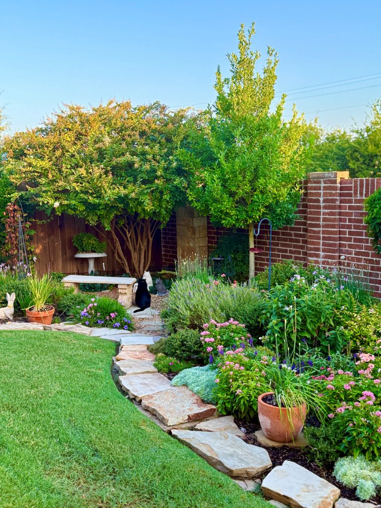 ROCKWALL, TX (Nov. 12, 2025) You’ve likely seen columns and photos from me regarding my former garden The Mildscape. I’m sharing this delightful view one final time. I started the garden from bare ground, four and a half years ago. A crew removed the sod, set the stone border, and the first trees were planted. Then it was my turn. I planted bushes, roses, perennials, put in stone pathways and pebbled areas; and each year a tiny percent of the garden was dotted with annuals to bloom during the heat beating of August in Texas.