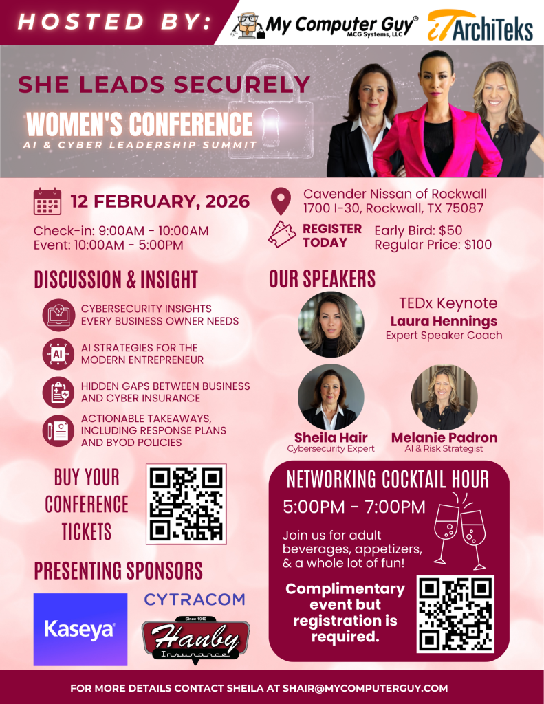 Rockwall, TX (February 19, 2026) – A powerful conference is coming to Rockwall designed for women leaders with discussion and insight on cybersecurity, AI strategies, and actionable takeaways to grow, protect, and build your business.