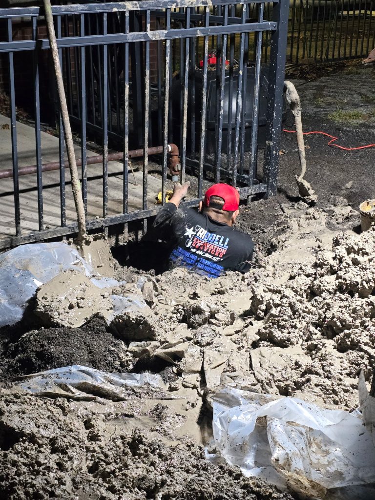 Working in partnership with American Mechanical Services, the crew spent the entire night on site—from 3 p.m. until 5 a.m. the next morning, including a shift change—digging, repairing, and restoring full water service before students arrived on campus. To protect the nearby school garden, team members even dug the area by hand, ensuring no damage was done to the space that the students and teachers value.